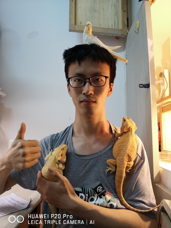 ”一同学带着荷兰猪进入拍摄现场,轻轻带着宠物的小爪子左右摇晃,一旁已经完成拍摄的的宠物狗溜溜特别喜欢这位新交的小猪朋友,扒在荷兰猪的小窝旁不愿离开。除了常见宠物,蜥蜴、蛇、玄凤鹦鹉等也出现在同学们投稿参与的图片中。