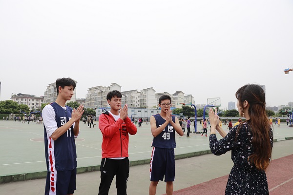 篮球队成员正在学习手指舞。( 聂民财 摄)