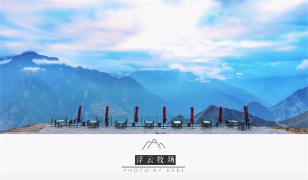 浮云牧场有一丝冷冷清清、离群索居的仙气儿,坐上了秋千的姑娘荡着云,像极了天上的仙子。每当正午时分,阳光将青山的面纱摘下,蓝天白云便只有咫尺的距离。无边泳池与蓝天融为一体,雄伟的山景、婀娜的姑娘倒映其中,有微风拂起波纹,人们才惊觉这不是一幅画。