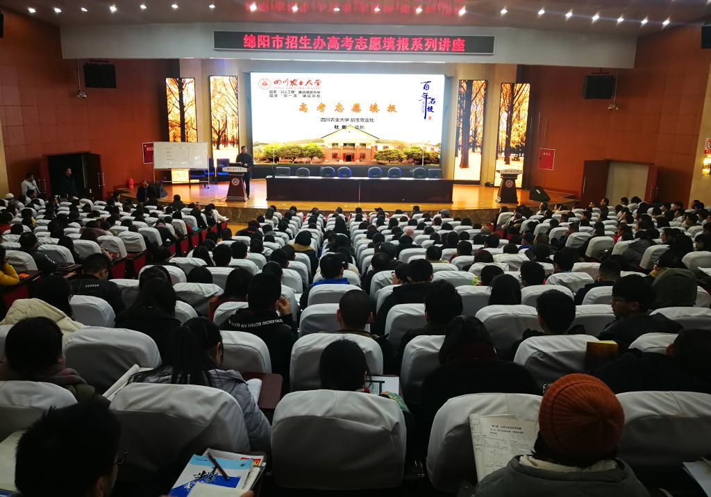 讲座以川农大为实例,紧扣学生家长密切关心的问题,围绕招生政策变化,特殊类型招生,毕业生就业,高校和专业的选择,平行志愿填报技巧等方面展开,提出“六个关注,三个了解,二条建议”与学生和家长进行面对面交流,场面火爆。讲座既清晰地告知家长和学生如何科学填报高考志愿,又以内容营销的形式把川农大的办学实力、办学水平、特色优势很好地进行了宣传。