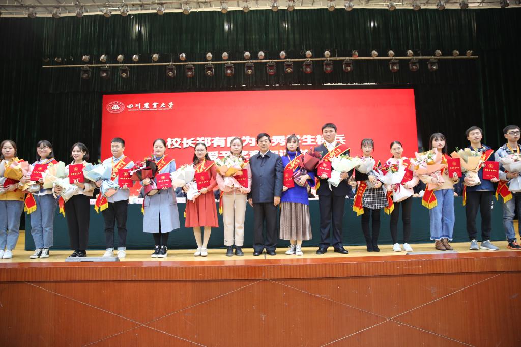 朱庆、吴德、朱占元代表学校对受表彰的集体和个人表示祝贺,对捐资助学的企事业单位表示感谢。校领导寄语同学们做兴农报国的爱国者,牢记兴农报国的时代使命,继续传承弘扬“川农大精神”,积极投身乡村振兴、脱贫攻坚的时代大潮,用个人的努力和奋斗来服务地方、造福社会,让爱国报国的鲜明旗帜始终在心中高高飘扬;做有效时间的管理者,充分利用有效时间,不做无谓的耗费,善于规划时间、用好时间,对想要做什么有明确方向,每个时间段都有自己的节奏,在清晰的规划和有效的时间管理中成就自我;做百战不馁的奋斗者,青春是用来奋斗的,面对人生路上的陡坡与险滩,失败与挫折,战胜了它,就是坦途与平川、成功与机遇;做开拓进取的创新者,希望同学们既专攻,又博览,既夯实基础知识,又敢于创新创造,在发现创造中点亮生活的光彩,在开拓创新中最终实现人生追求。
