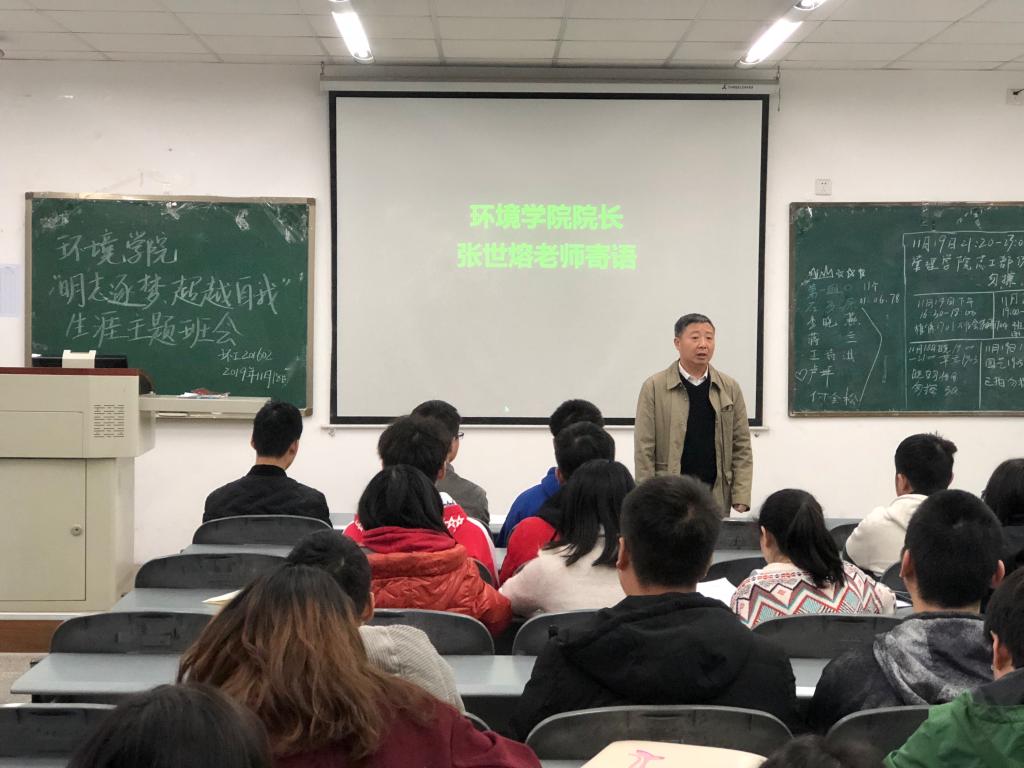 学院院长张世熔在参加环境工程高年级班会时对同学们说了三点意见,第一,关注社会,思考人生。面对未知尽早准备,提升自身水平,不做“被动”的求职者、求学者。第二,以自己的人生经历为例,要求同学找准定位,抓住机遇,找到适合自己的道路去奋斗和拼搏。其三,有效利用时间,学好专业课,丰盈知识储备、多做专业实践,提升专业能力,适应社会需求。在参加低年级班会时,他希望同学们要有理想、有规划、有执行力,注重身心健康,培养自己良好的道德品质,从政治素养、专业知识、为人处事、沟通能力等方面努力提升自己的能力,建议同学们在大学里加强“论文写作”与“表现自我”。他也指出同学们目前“责任心还不够,学习积极性不充分,自控力不够”等问题,希望未来同学们学会在人生中不断重塑自己的规划,于稳步求进中努力寻找新的人生目标。