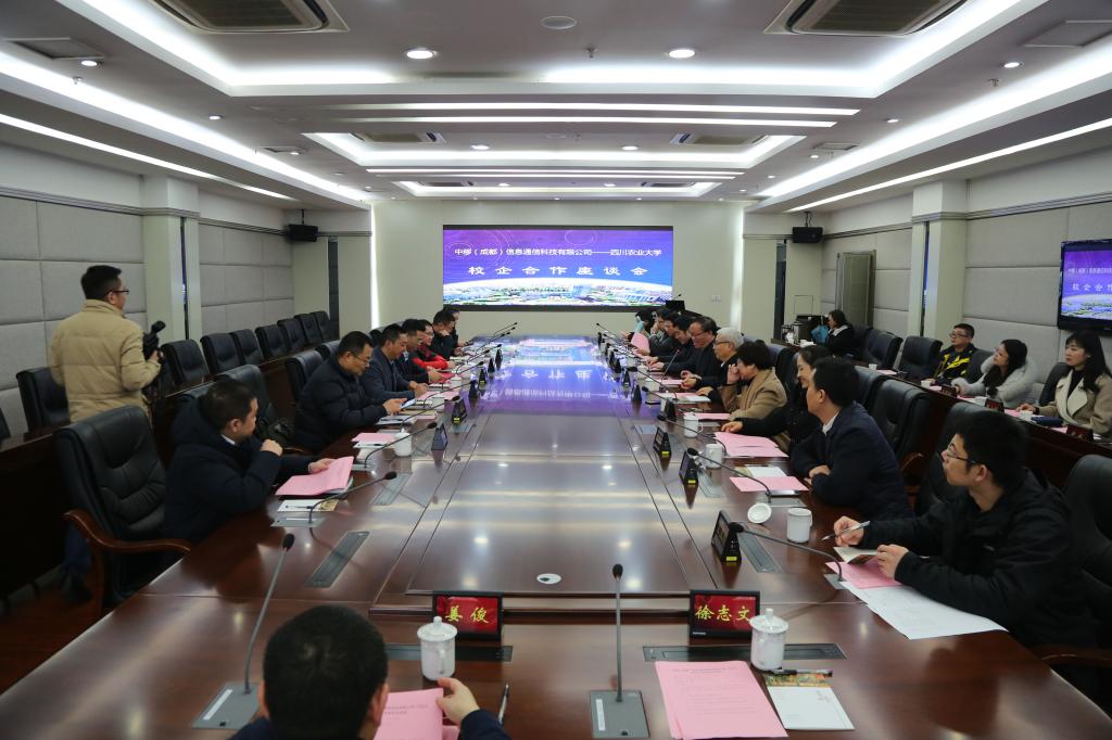 1月6日下午,中移(成都)信息通信科技有限公司(以下简称“成研院”)院长刘耕、副院长赵立君一行来校,围绕日前双方签订的战略合作框架协议,就加速推进5G技术在农业和农业教育领域的应用等事宜进行商讨。党委副书记张强,副校长吴德及招就处、农发院、研工部、农学院、动科学院、动医学院、园艺学院、机电学院、信工学院负责人与来宾进行了座谈。