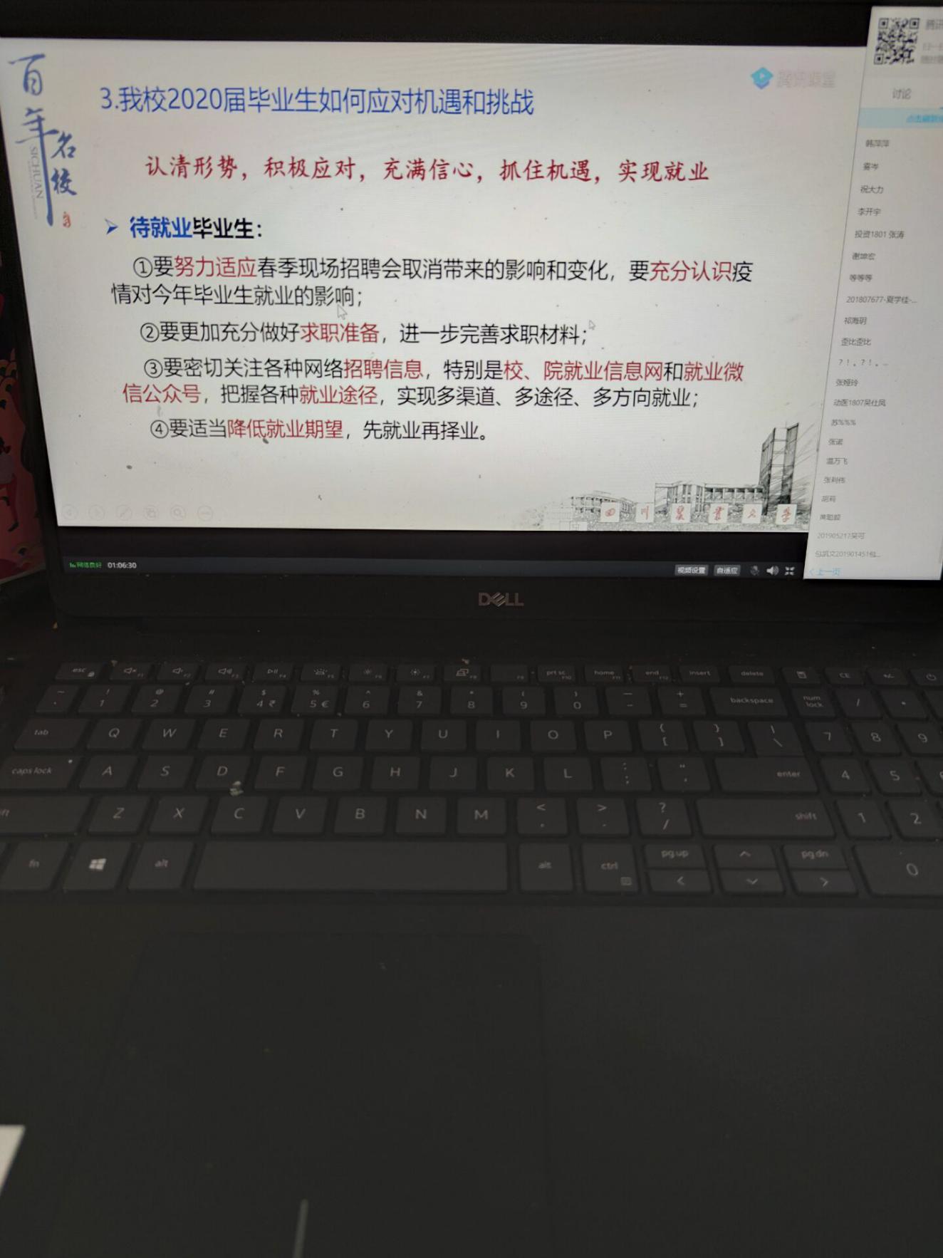 “高兴在家也能听到这么全面的就业分析和指导,讲座干货满满,特别是对我校2020届毕业生的分类指导。”农学院16级毕业生李同学说道,“我是待就业毕业生,接下来我将调整心态,适当降低就业期望,完善求职材料,积极参加空中招聘会。”