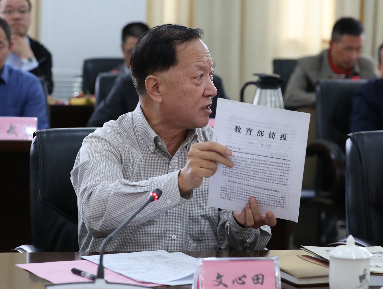 校级老领导代表、原党委书记、校长文心田专门带上自己珍藏多年的剪报与文件,为大家讲述“川农大精神”命名前后的感人故事。他说,“川农大精神”并非一句口号,而是客观、真实、广泛地存在于川农大各处,是代代川农人共同的精神家园。在新时代,我们更要牢牢把握住“川农大精神”的精髓——爱国、奉献和奋斗,继续踩田地、蹲圈舍、钻山林,书写顶天立地的川农华章。
