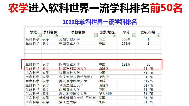 ——从世界大学与学科排名看,学校坚持以优势特色学科引领带动学科整体水平提升,近年来在国际主流权威大学排行榜稳中有进,2019年在QS世界大学学科排名中我校农学与林学入围全球前300强;在2020中国上海软科世界一流学科排行中,我校有5个学科进入,其中农学、兽医学分别进入世界前50强和前50-75强。