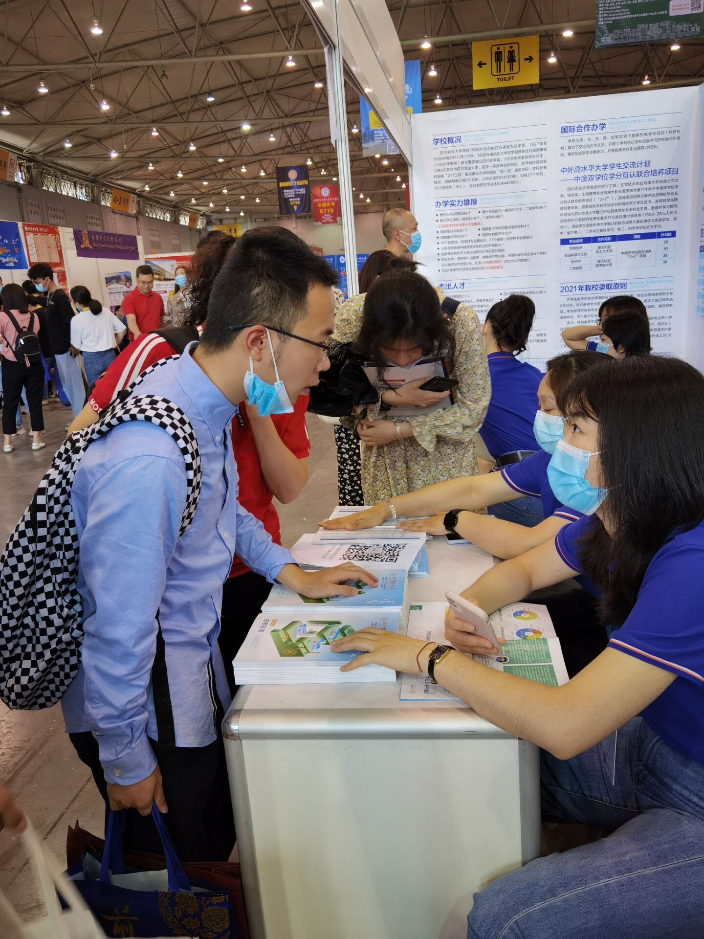今年,学院在去年基础上积极更新专业招生宣传视频。农学院、动物科技学院、水利水电学院、风景园林学院等组织党委办主任、系主任、专业教师积极参与线上直播、录播。建筑与城乡规划学院、艺术与传媒学院、环境学院等积极前往省外中学宣讲,并建设优质生源基地。在成都新会展中心,现场咨询工作强度太大,老师们忙到连吃盒饭都抽不出时间。填报志愿期间,学院老师与招生就业处一起参与电话网络咨询,一天两餐盒饭加面包,周末和晚上也不放松。招生办的学生助管在期末复习期间也积极参与招生咨询工作……