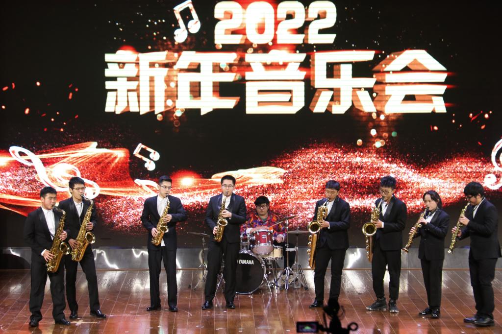 音乐会在热烈欢腾的《春节序曲》中拉开帷幕。管乐三重奏《肖斯塔科维奇三号》与弦乐五重奏《鳟鱼》欢快活泼,洋溢着生命活力与青春气息;青年教师李莹带来的女声独唱《如梦令》尽显中国文化独有的温婉柔美,赢得满座掌声与喝彩;今年校园歌手大赛冠军团队用男声小合唱《雪花的快乐》带领观众们感悟徐志摩先生对自由与爱情的追求;萨克斯重奏《闪电》以鼓相伴、慷慨激昂,奏出同学们直面黑暗与挑战的勇气;钢琴、小提琴协奏《梁祝》柔中带刚、荡气回肠,展现曲作者对美好生活的追求;青年教师陈明滟、周昊联手原创作品《日照金山》描绘出长征途中战士奋勇前行、不惧挫败的英勇气魄;一曲明快流畅的民乐小合奏《挂红灯》传递出浓浓的节庆气氛;西洋打击乐曲《Tribal Beat Sound System》则在激情澎湃的节奏和同学们相得益彰的默契配合中敲响新年钟声,将现场氛围推向高潮;学生演唱团以高难度的无伴奏合唱《春天到万家》传递在党的领导下全国贫困县尽数脱贫摘帽的和煦暖意。最后,在马保欣老师指挥下,大学生交响乐团带来的《难忘今宵》奏响音乐厅,音乐会在回顾去岁、畅想2022年的美好祝愿中落下帷幕。