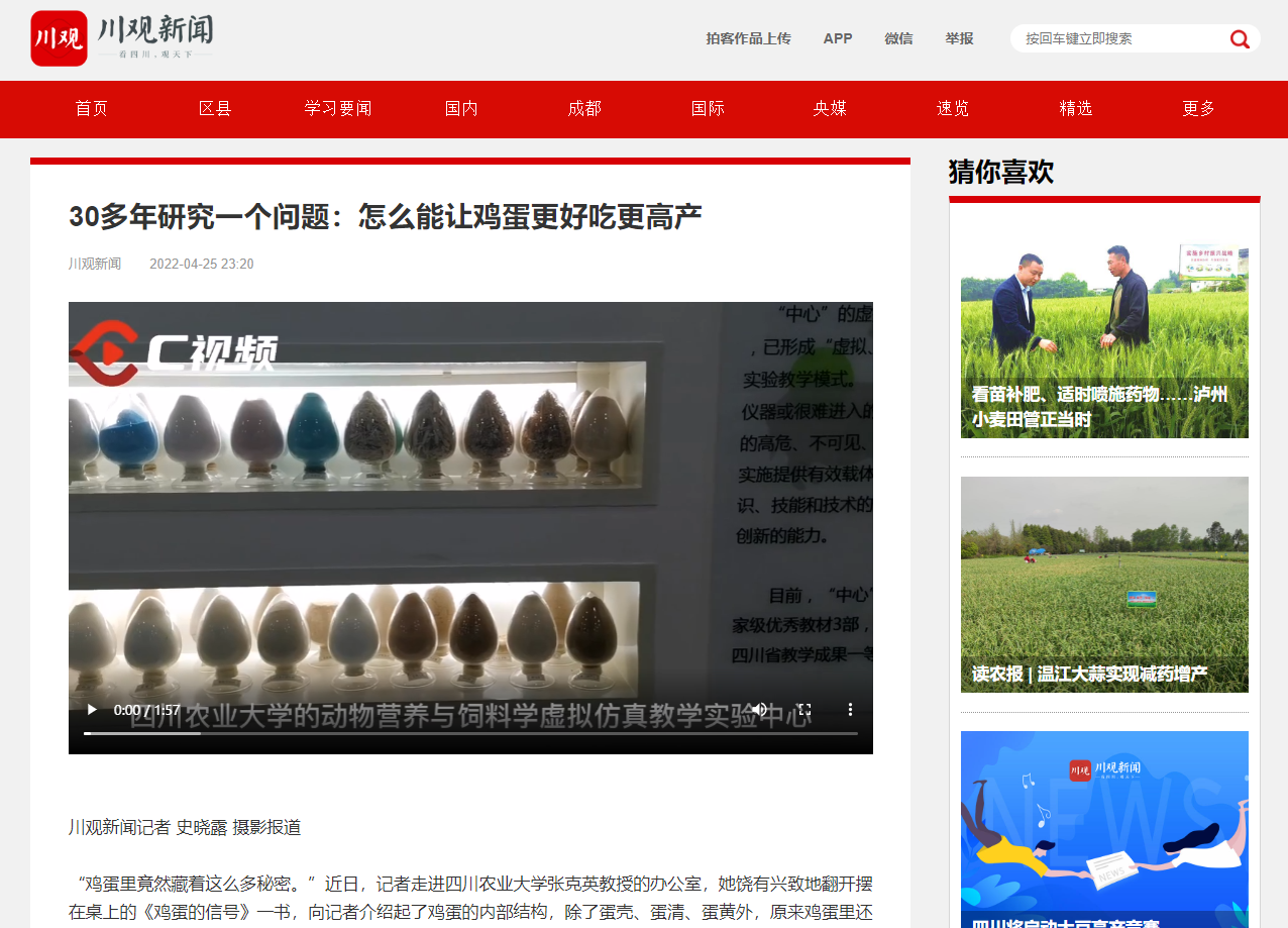 这只是关于鸡蛋的一个生活小常识,张克英的研究远比这复杂。她带领团队研发出了优质安全鸡蛋高效生产的饲料营养调控关键技术,这项科技成果荣获了2021年四川省科技进步奖一等奖。