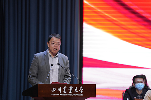 吴德在典礼上讲话,向每一位在奋斗中成长、在实践中蜕变的川农大学子表示最热烈的祝贺,向勤勉育人的老师、长期支持学校建设发展、关心学子成长成才的校友和各界人士表示感谢。他指出,在过去的一年,全校师生员工齐心协力,共抗疫情。学校尽心竭力为同学们成长成才创造更好的条件、营造更好的氛围。同学们用奋进书写了川农大学子的完美答卷,收获了亮眼的成绩单,本科生获奖助人数占比50%,学制内研究生奖助覆盖率达100%。表彰大会不仅仅是对学生的表彰奖励,更是要通过表彰奖励传递川农大办学理念、育人目标的三个内涵:即奖励成长、播种期待以及希望同学们懂得感恩。