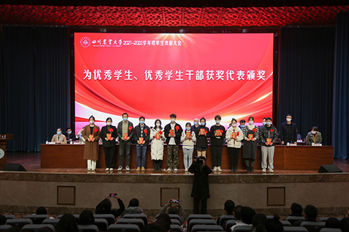 129日下午,2021-2022学年度学生表彰暨颁奖典礼在成都校区音乐厅隆重举行。今年全校共计12150位同学和185个集体受到表彰,发放各类奖助学金超过9760万元。校党委书记庄天慧,校长吴德,校党委副书记张强,纪检监察组组长、党委副书记、纪委书记刘鹏,副校长刘登才、李明洲、卢艳丽,党委常委、统战部部长杨锦秀,党委常委、宣传部部长江英飒以及多位捐资企业家代表出席,并为获奖者代表颁奖。
