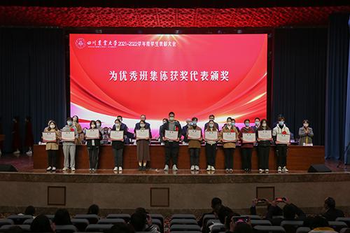 本年度,按照《2021-2022学年度本科学生表彰决定》,动物医学院等10个学院获“学风建设奖”,化学202104班等88个小班获“优秀班集体”,康玉等10人获评“优秀学生标兵”,甘富全等20人获“优秀学生标兵提名奖”,林汝彦等2743人获“优秀学生”,王梦迪等1371人获“优秀学生干部”,杨琴等66人获“国家奖学金”,蒋婷等1105人获“国家励志奖学金”,樊佳慧等200人获“优秀学生奖学金”,刘禹彤等1050人获“社会捐资奖学金”,彭浩等324人获“单项奖”。按照《2021-2022学年度研究生表彰决定》,8个研究生会获“优秀研究生会”,95名研究生获“研究生国家奖学金”,2529人获“研究生学业奖学金”,8人获评“研究生优秀标兵”,9人获研究生优秀标兵提名奖,533人获“优秀研究生”,211人获“优秀研究生干部”。典礼还颁发了包括“陈育新优秀学生奖学金”、“大北农励志奖学金”“丰仓奖学金”等社会捐资奖学金。