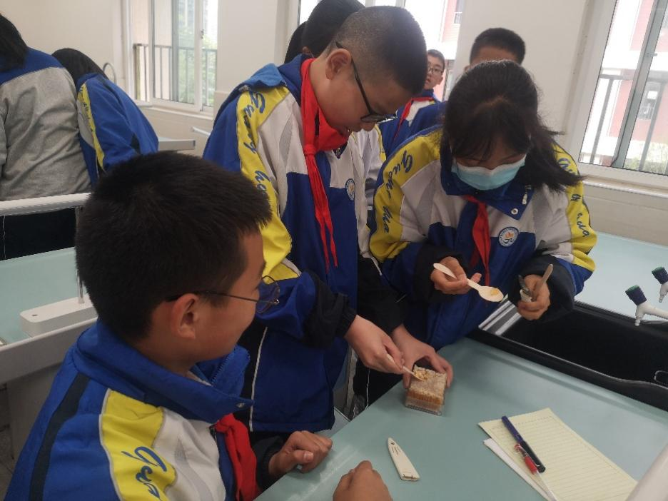 活动现场,团队还分发了天然的巢蜜,通过趣味小实验,讲解了如何通过“一看二闻三品尝”的三步法辨别蜂蜜真假。同时,团队指导同学们灌装现场熬制的蜂蜜唇膏原液,同学们积极动手参与,在体验DIY的乐趣中,收获了一只“可以吃”的唇膏。