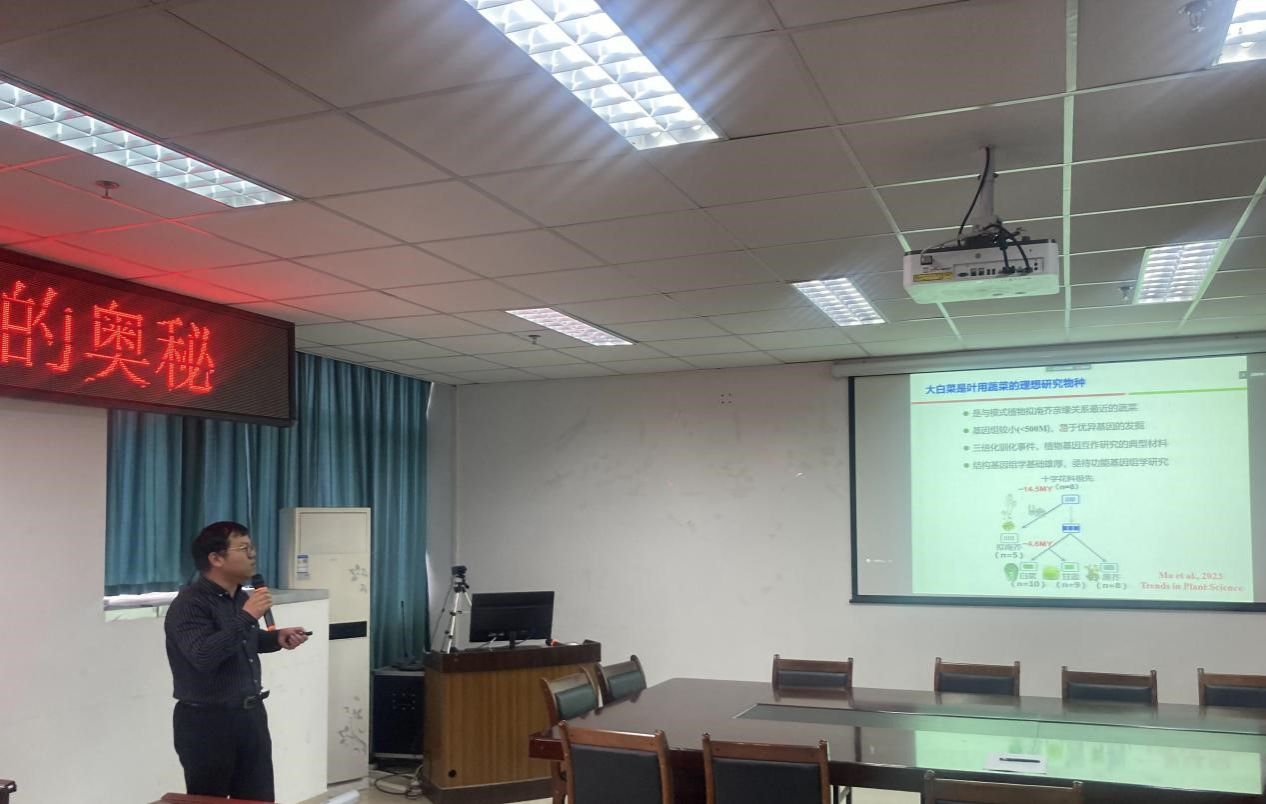 马卫教授以“大白菜叶球形成的奥秘”为题展开报告。叶球是结球蔬菜(大白菜、甘蓝、生菜等)的重要商品器官。然而,结球性状是由多基因控制的数量性状,且容易受环境影响,导致结球的研究具有极大的挑战性。在报告中,马卫教授分享了其所在的河北农业大学蔬菜遗传育种团队在大白菜叶球形成的表型组学平台构建、突变体库数据库建立、重要性状基因挖掘以及BR信号途径介导叶球形成机理等方面取得的最新研究进展和成果,揭秘了大白菜叶片为何能够“抱团”。马卫教授还针对线上线下师生关心的回答进行了回答并进行互动探讨。期间,他还结合自身经历,就研究生如何快速成长和年轻教师如何深入开展研究分享了自己的经验和体会。