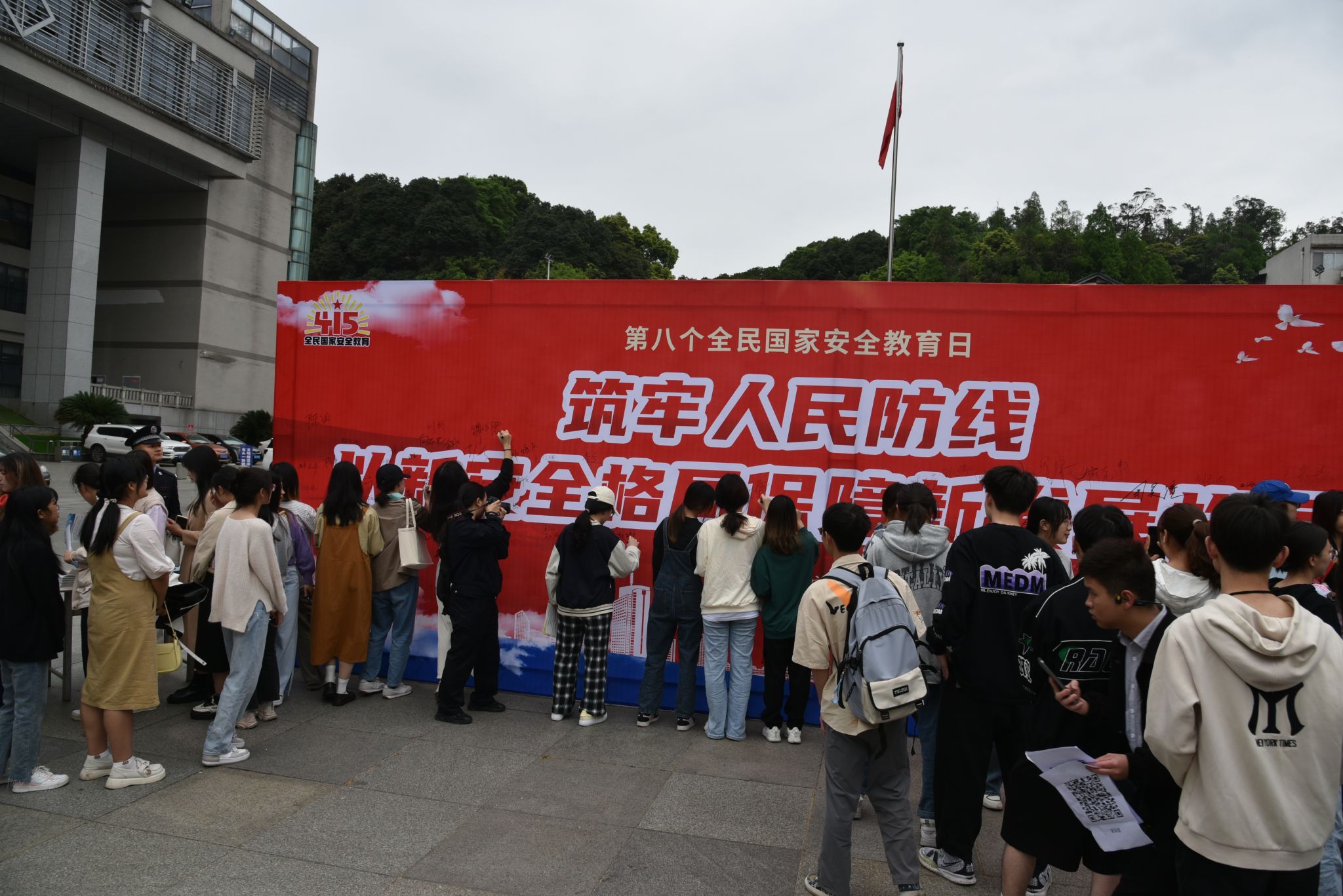 活动现场悬挂了国家安全宣传标语,设置了民警讲解点和各类宣教设施。活动中,市公安局民警讲解了习近平总书记对国家安全作出的重要指示、《中华人民共和国境外非政府组织境内活动管理法》、《四川省<中华人民共和国反恐怖法>实施办法》、《中华人民共和国安全法》等基本内容,向同学们发放了宣传单和宣传手册2000余份,拓展了同学们关于国家安全、防范诈骗、禁止黄赌毒等安全知识,增强同学们国家安全意识和素质。同学们纷纷踊跃在宣传墙上签名留念,自觉抵制危害国家安全的言论、行为,自觉维护祖国的安全和利益,争当保护国家安全的小卫士。