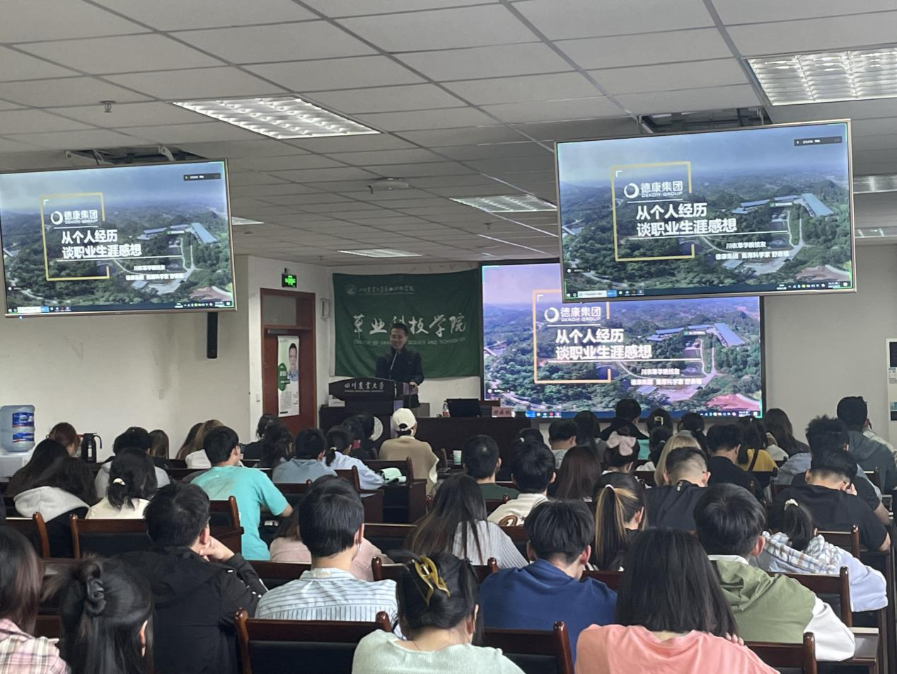 为进一步加强学生职业规划引导,厚植学科专业情怀,4月25日下午,优秀校友、猪禽种业全国重点实验室主任、德康集团首席科学家舒鼎铭博士受草业科技学院邀请来校做职业规划辅导并与现场的学生互动交流。全校研究生、本科生120余人参加了报告交流会。