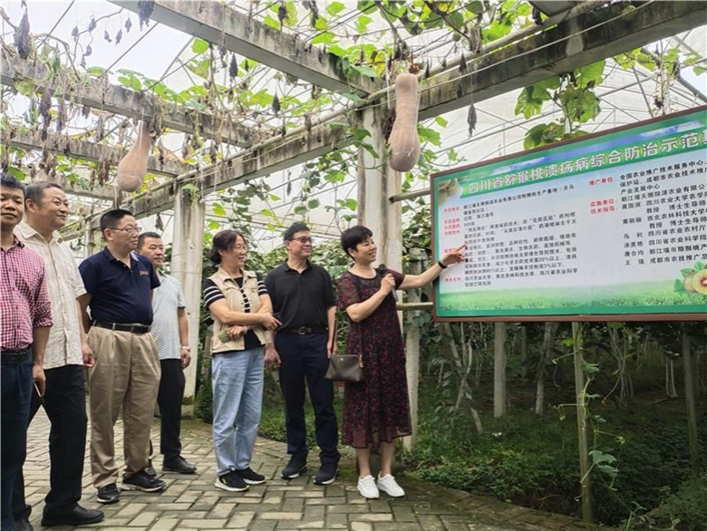 tyc41183太阳成集团教授、都江堰猕猴桃科技小院首席专家龚国淑田间推广溃疡病综合防治技术。