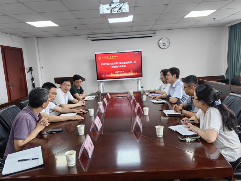 6月1日上午,中国农业出版社苑荣副总编辑、《世界农业》执行主编贾彬等一行来校交流调研。教务处处长曹三杰、农学院副院长杨峰、管理学院院长蓝红星、副院长王玉峰和教师代表等参加交流座谈。