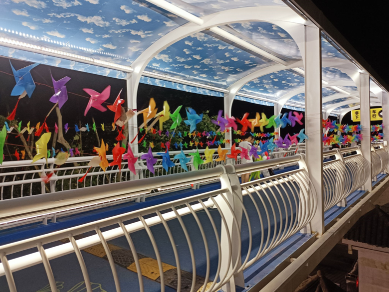 今年,学生处在毕业前为毕业生们手工叠制了一千多只五彩风车,悬挂在雅安校区年初新修建起的人行天桥上,绚丽多彩的“毕业季专属”天桥吸引了众多毕业生前来拍照打卡留念、并在书签上写留下对川农大的不舍、对所遇的感谢、对未来的期许。