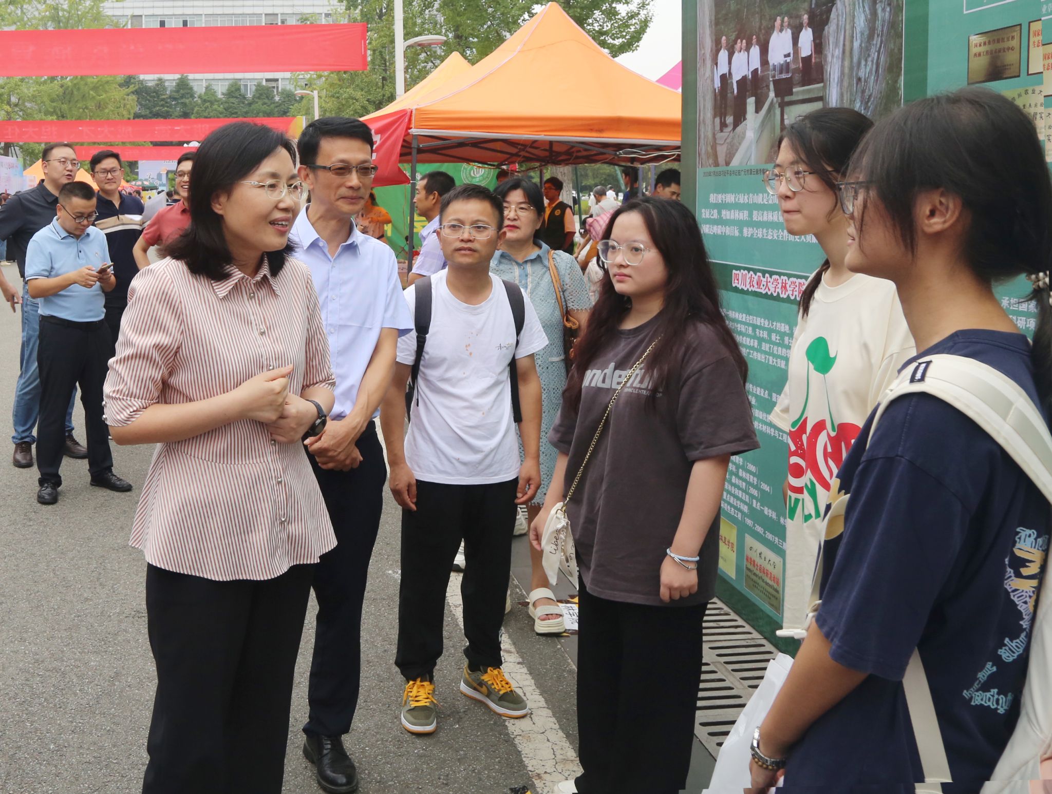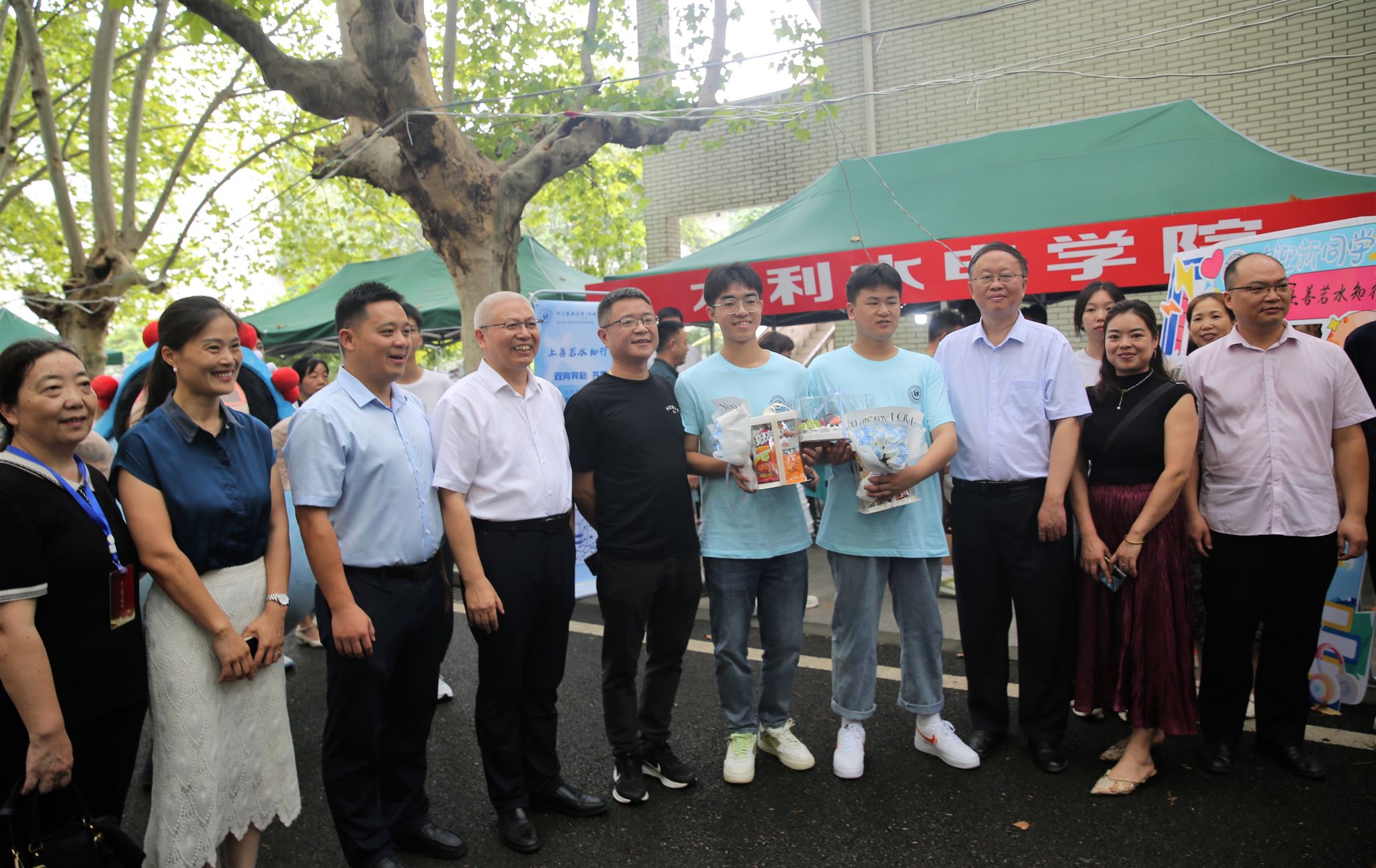 校领导还向提供热情周到服务的所有迎新工作人员、关工委老师和志愿者同学表示感谢和慰问。为了迎接2023级新川农人,各部门、各学院用心用情,或是设置主题教育学习展板、布置优秀学子去向墙等,将思想政治教育融入迎新工作;或是准备精美甜品、AI运动小游戏、标本展等,把专业教育贯穿迎新始终;或是赠送印有“川农大精神”、学校学院标识的定制礼物,加深新生们对川农大的身份认同。同时,为了全面展现迎新季校园的勃勃生机,学校还组织了近百名校园拍客,对三校区迎新工作进行全程图片直播。截止发稿,直播观看人数已超15万。