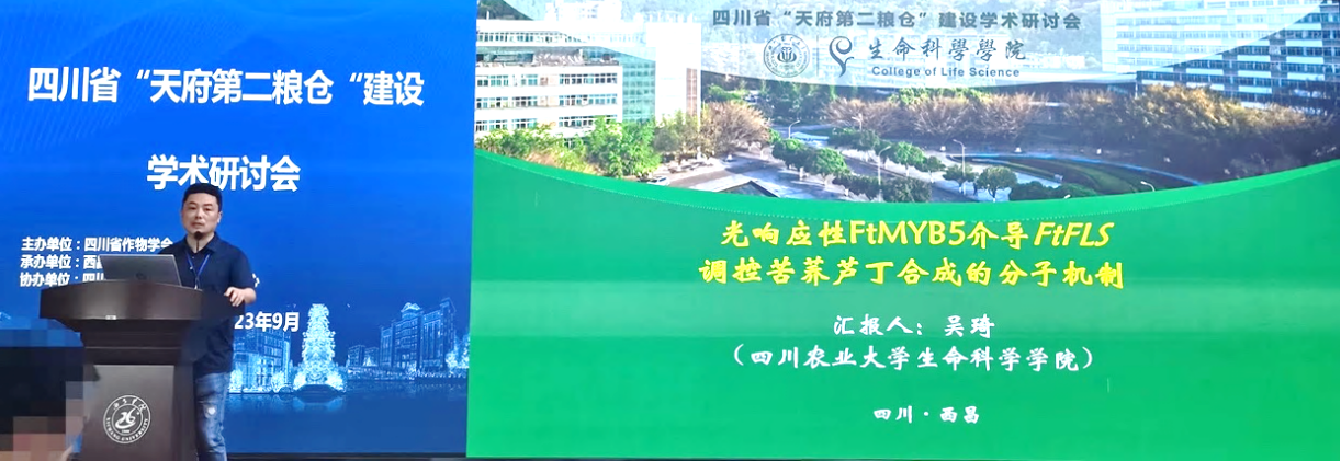 9月21-23日,四川省“天府第二粮仓”建设学术研讨会在西昌学院召开。生命科学学院“荞麦代谢调控与逆境生物学”科研团队吴琦教授和青年教师吴花拉博士应邀参会。吴琦作为报告嘉宾,作了题为“光响应性FtMYB5介导FtFLS调控苦荞芦丁合成的分子机制”的大会报告,并介绍了团队近年来的主要研究进展。
