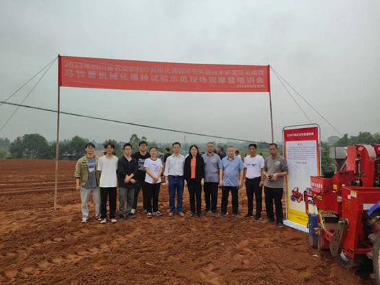 近日,四川省农业农村厅丘陵山区马铃薯单产提升关键核心技术及装备创新项目团队在自贡市举办首次马铃薯机械化播种试验示范现场观摩和培训会,我校机电学院院长许丽佳教授团队研发的马铃薯精量播种机进行了现场示范,西华大学和东北农业大学团队研发的马铃薯播种机也同场进行了播种试验。四川省农业农村厅农机化处肖小川副处长、省农机推广总站任丹华研究员、西华大学现代农业装备研究院院长王霜教授、东北农业大学李季成教授、贡井区及五宝镇相关领导及当地多家马铃薯种植户合计40余人参加了本次马铃薯播种试验示范现场观摩会。