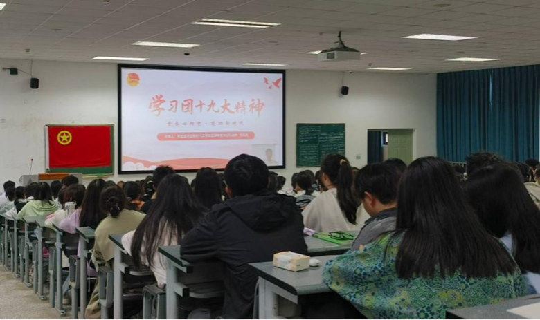 团十九大代表张芮槐分享团十九大精神(图片来源:校团委)