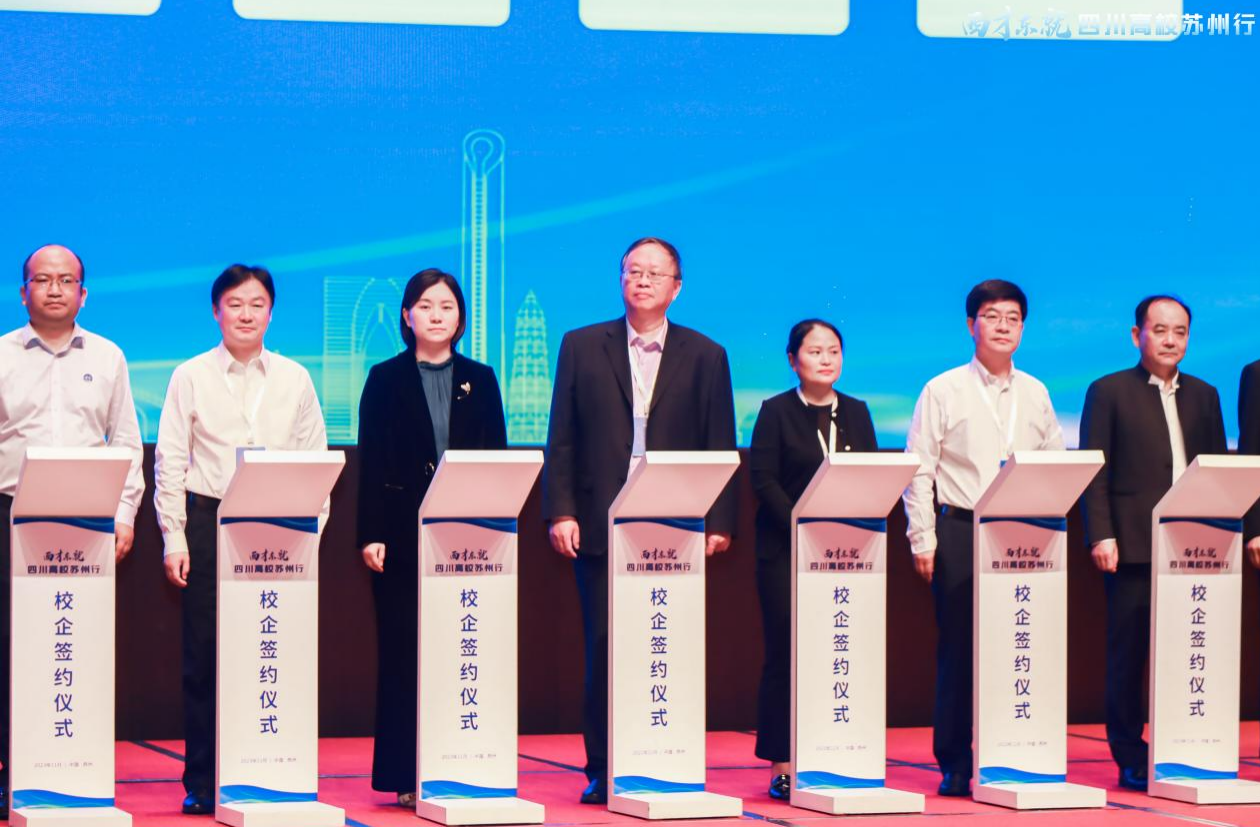 张强一行在杭州、苏州分别参加了两地组织的专场校企签约仪式、高校推介会、校企对接会、校友座谈会等多场活动。张强作为全省5所高校代表之一向江苏企业推介四川高校和我校毕业生。张强以“川农大是一所什么样的大学?”为切入,全面详细地介绍了我校在学科建设、师资力量、科研成果以及人才培养等方面的“特点”和“亮点”,以及我校2024届毕业生的整体情况,引起在场企业代表的广泛关注。在杭州组织的四川高校校友座谈会上,张强代表与会高校发言,他向各高校校友介绍了我校2024届毕业生情况,并对发挥校友资源更好促进校友和学校之间的良性互动提出期待与建议。