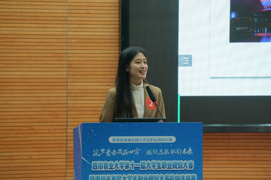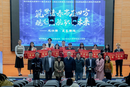 总决赛邀请了四川省教育厅领导、企业人力资源专家及校内相关单位负责人担任评委,通过生涯规划书报告/简历点评、PPT 陈述和互动问答方式进行。与往届校赛不同,就业赛道特增“天降offer”环节,现场评委根据选手表现,结合单位实际招聘需求,现场给出“offer直通卡”,实现人才和企业之间的双向奔赴。专家评审团主要从生涯规划书质量、简历呈现、个人综合素养、语言表达能力、团队协作能力、临场应变能力和抗压能力等方面进行全方位考核。经过激烈角逐,最终来自水利水电学院的大三年级李佳桐同学荣获成长赛道一等奖,来自经济学院的大四年级谢慧琳同学和博士研究生万艾琳同学荣获就业赛道一等奖。“本次比赛既搭建了同学们展示自我、追求职业梦想的舞台,也提供了校企相互借鉴、共同进步的交流平台,我感受到了川农学子勇于承担使命、乐于奋斗奉献、敢于勇毅前行的奋斗姿态和优良精神风貌。”中铁二局集团有限公司人力资源部副部长龙振赛后点评道。