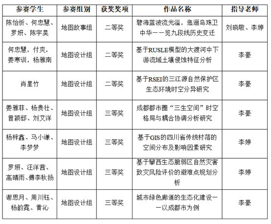 近日,2023年“易智瑞杯”中国大学生GIS软件开发竞赛评选结果公布,资源学院学子在本届竞赛中再次突破,斩获佳绩,喜获二等奖3项、三等奖4项(见下表),这是自参赛以来获奖数量最多的一年。