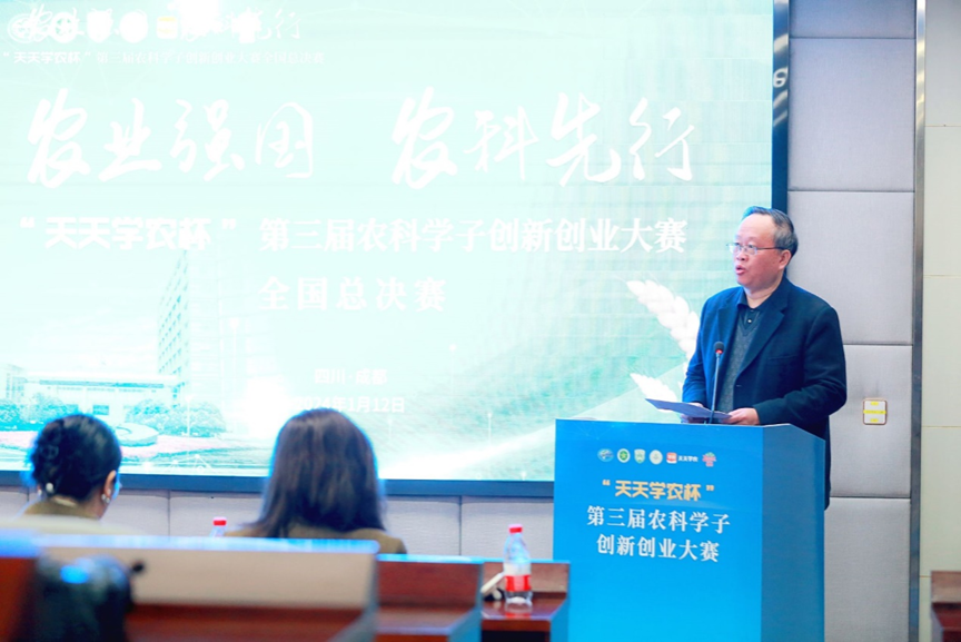 近日,“天天学农杯”第三届农科学子创新创业大赛全国总决赛在我校成都校区成功举办。总决赛邀请了作物学会人才培养与教育专业委员会、中国农业大学、华中农业大学、东北农业大学、tyc41183太阳成集团等高校领导、专家,深圳市天天学农网络科技有限公司、佳沛泽普果业(上海)有限公司相关领导出席并担任评委,校党委副书记张强出席活动并发表开幕致辞。