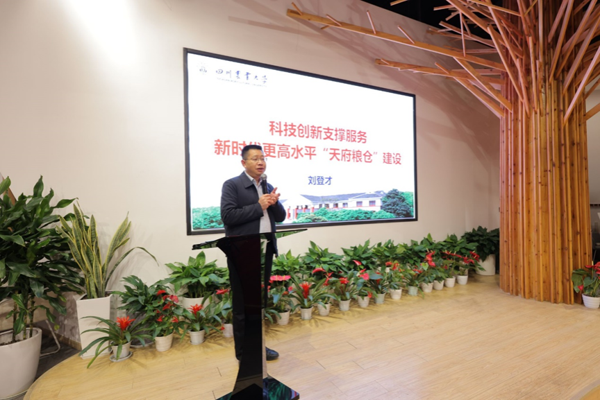 刘登才以《科技创新支撑服务新时代更高水平“天府粮仓”建设》为题作主旨发言,就学校基本情况和服务更高水平“天府粮仓”建设情况做简要介绍。近年来,川农大坚决贯彻落实习近平总书记来川视察重要指示精神,持续创新管理机制,整合科技、人才和平台资源,面向多元主体,“人才+项目+成果”三位一体协同推进,持续增强科技创新服务新时代更高水平“天府粮仓”建设的活力与能力。