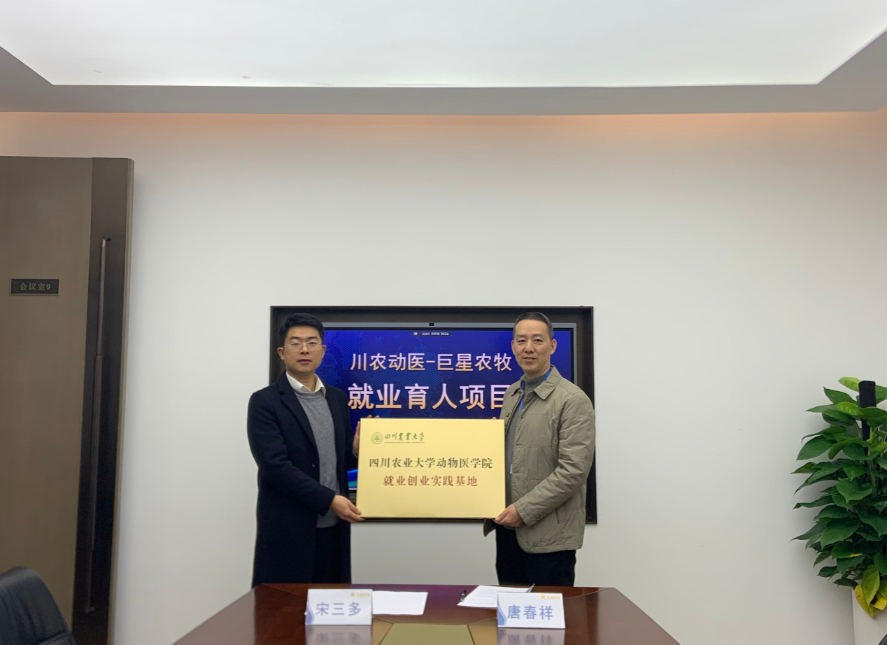 动物医学院党委副书记宋三多代表学院向巨星农牧有限公司授牌