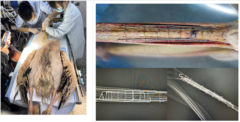 面对白鹈鹕体型庞大、呼吸道结构特殊、全身性皮下气肿以及上喙断裂严重、喙部结构复杂、手术空间狭小,且伤口周围存在感染等多重挑战,医疗团队展现了卓越的专业能力和团队协作精神。在精心制定的麻醉方案和手术方案指导下,采用了平衡麻醉方案和克氏针结合钢丝外固定的方法,确保了手术的精准和安全。手术过程中,医疗团队的专业操作和对细节的关注,为白鹈鹕的康复打下了坚实的基础。