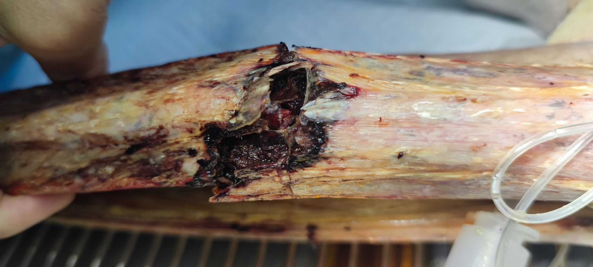 图2 麻醉、清创等准备工作 图3 术后照片及Dr图像