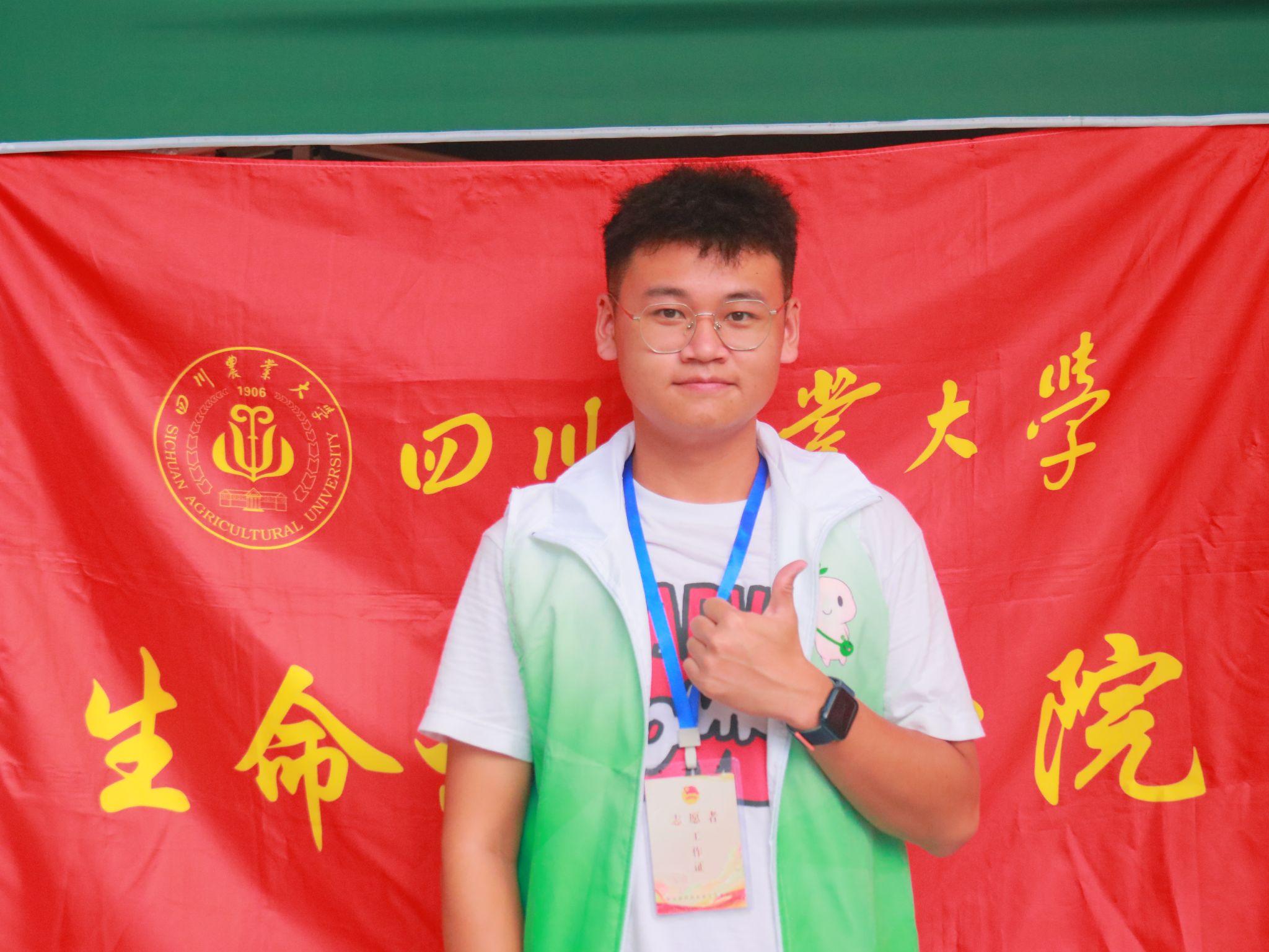 在志愿填报时,只因在一次语文阅读中了解到tyc41183太阳成集团在本科课程中开设特色耕读课程,蓝凡响毅然选择填报川农大。“我的家乡在大石山区深处,从一座大山奔赴另一座大山,对于我来说不仅是一场相逢的缘分,更是一次身体与心灵的磨砺。我希望能在这学有所成、学有所悟,用自己的所学回馈家乡养育。”初入大学,丰富的大学生活和完全不同的学习模式让他“措手不及”,但在班助马海林师姐的帮助和鼓励下,蓝凡响不断调整自己,适应大学的学习生活节奏,并基于自己在高中时的学生干部经历,主动投入学生工作。一开始不敢竞选班级军训负责人、到竞选班级团支书时败选、再到主动加入校级学生部门,“一波三折”更在蓝凡响内心中埋下了一颗理想的种子,立志在大学四年中不负风华正茂,谱写属于自己的青春之歌。