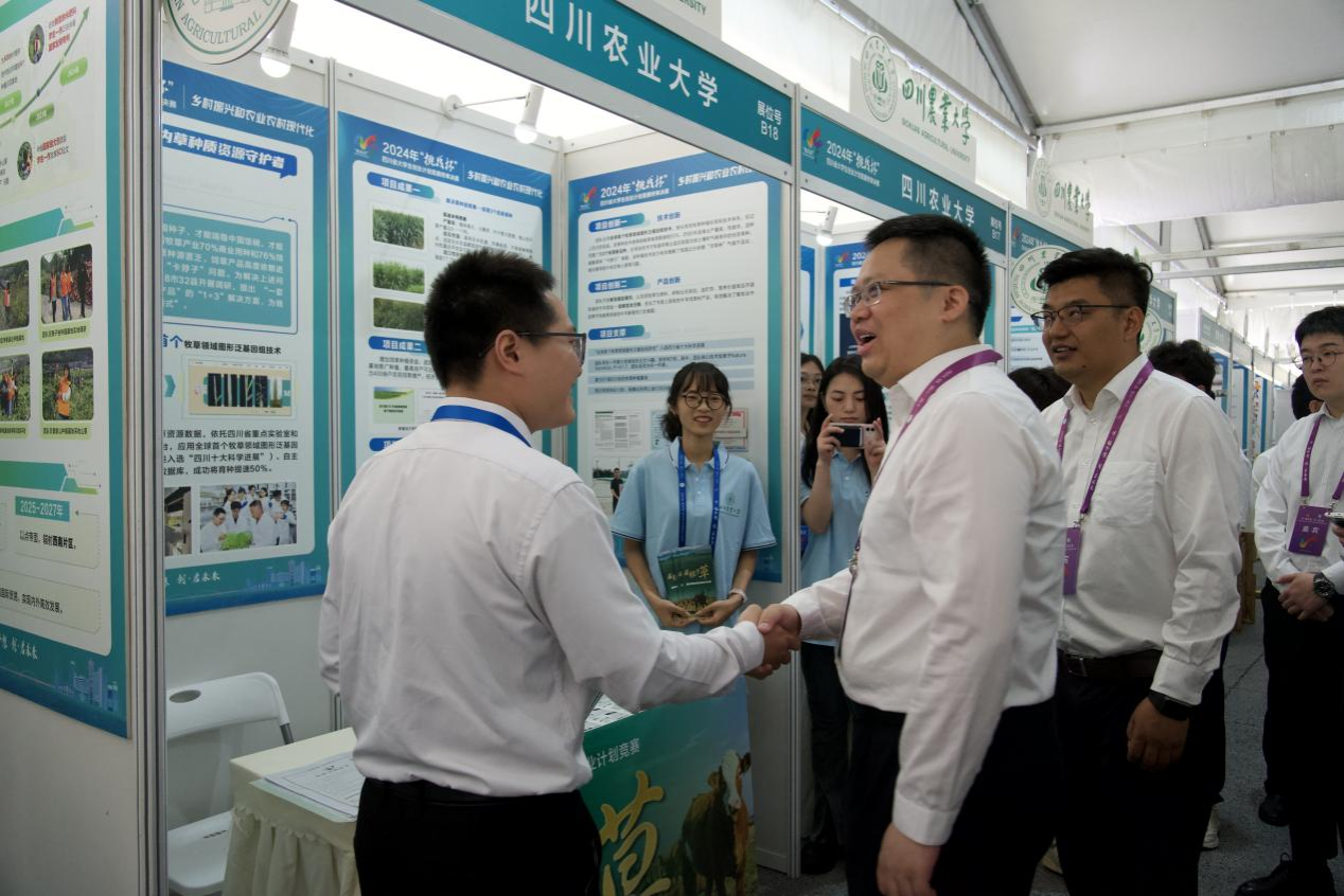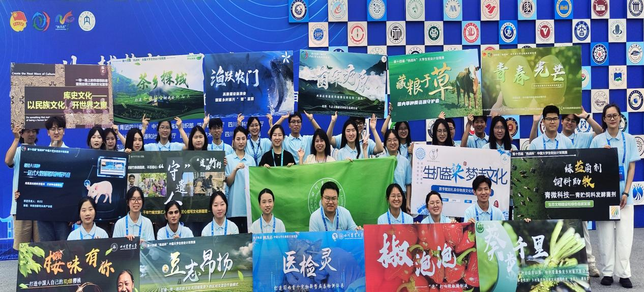 在省赛决赛激烈角逐中,我校5个赛道16个项目得到参评专家评委的高度关注与一致肯定,其中来自农学院的《“豆”志昂扬——“大豆玉米带状复合种植技术”公益推广第一团》、动物科技学院的《猪佳AI育种———站式大数据猪育种服务商》《渔跃农门——设施渔业赋能乡村振兴“智”富路》、动物医学院的《医检灵——宠物病毒检测专家》、草业科技学院的《藏粮于草——国内草种质资源守护者》、园艺学院的《葵步千里——引种治苗育山葵:特色资源焕发乡村振兴新动力》、人文学院的《生机盎“染”——梦诗文化数字赋能扎染非物质文化传承与发展》、公共管理学院的《库史文化——民族文化市场化与乡村振兴新路径的虔诚探索者》和校团委的《青春光芒——00后的芒果兴乡助农模式新探索》等9个项目斩获金奖;来自园艺学院的《椒泡泡———“泡”打响辣椒腌制战》《樱味有你——打造中国人自己的双J级樱桃》、草业科技学院的《菌军疗原——西部高寒退化草地修复的先锋菌队》、林学院的《遗路竹行——以非遗赋新之力、筑乡村振兴之基》、资源学院的《青微科技—青贮饲料发酵菌剂》和马克思主义学院的《茶乡探域——打造茶旅融合的成渝新名片》等6个项目获得银奖;来自机电学院的《一键慧种——粮油供给安全的护航者》获得铜奖。