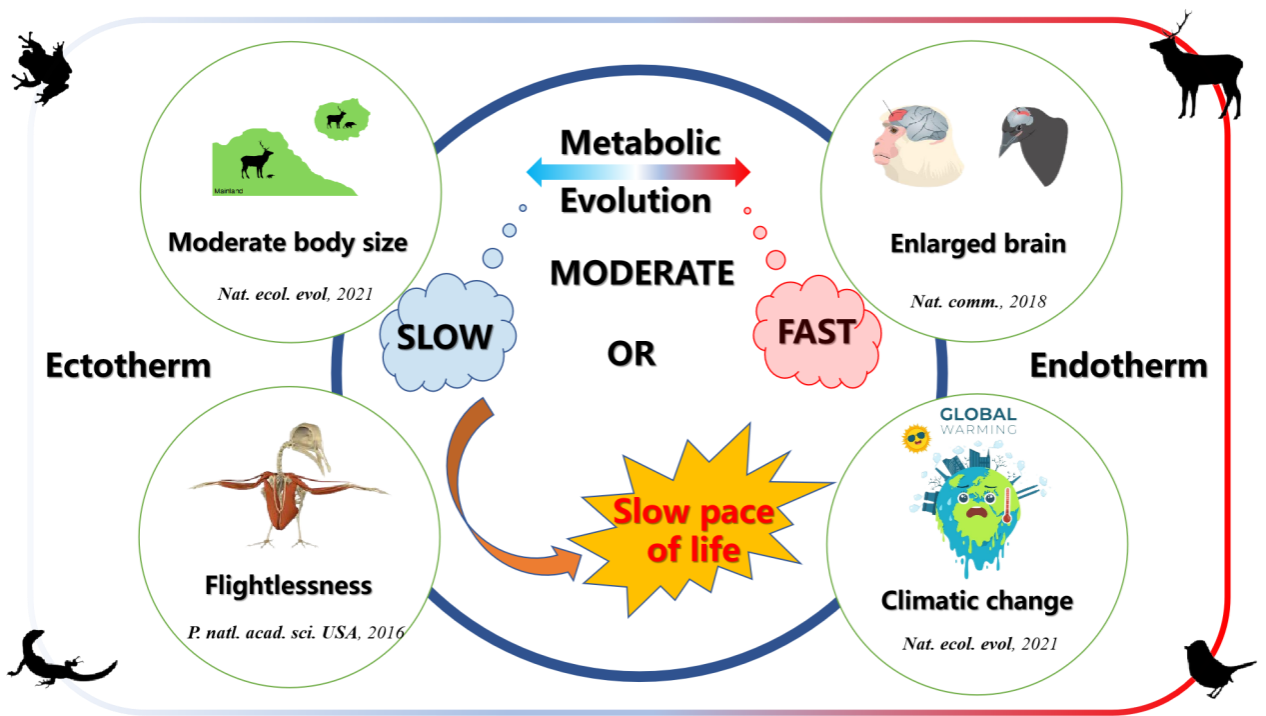 通常情况下,岛屿环境的食物资源较为稀缺,种间竞争和捕食压力相对较低。因此,动物可能会演化出更为缓慢的生活史策略。然而,岛屿脊椎动物的代谢与生活史之间的进化权衡以及这些权衡对灭绝脆弱性的影响,至今仍未被充分理解。鉴于此,2013年英国生态学协会在其公布的“100个最重要的生态学基础问题”中,特别列出“生活史权衡的生理基础是什么”这一困扰生态学家几十年的难题。