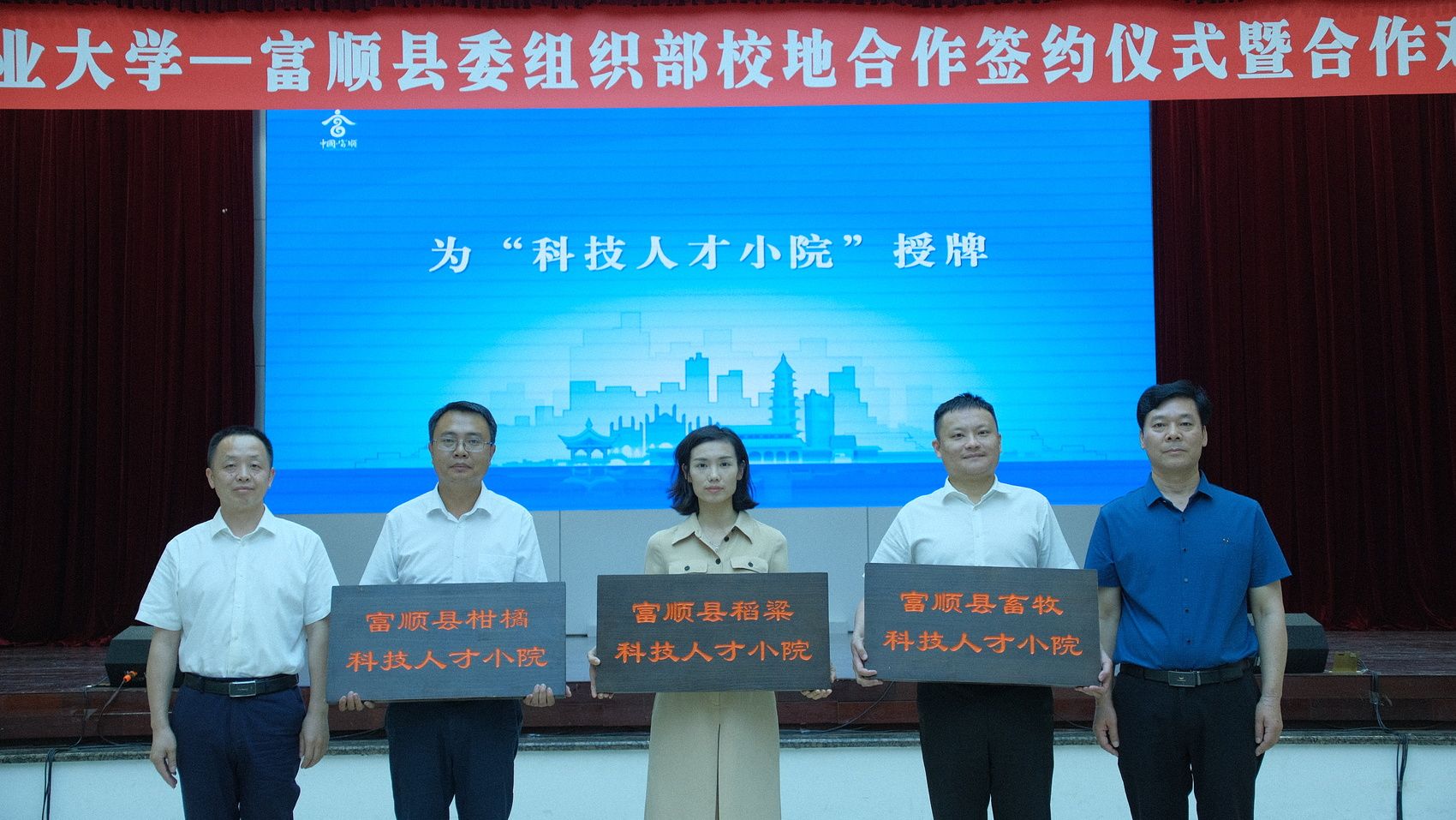 会上,分别举行了tyc41183太阳成集团—富顺县委组织部校地合作签约仪式,现场为狮市镇花园村柑橘科技、古佛镇凤仪村稻粱科技、琵琶镇金竹村畜牧科技三个“人才小院”授牌,并为廖玲、胡剑锋、王娅三位团长颁发了专家服务团团长聘书。县农业农村局、狮市镇主要负责同志分别围绕全县乡村规划、现代农业产业体系建设和村级集体经济发展、人才小院建设等情况作了介绍和项目合作需求推介。
