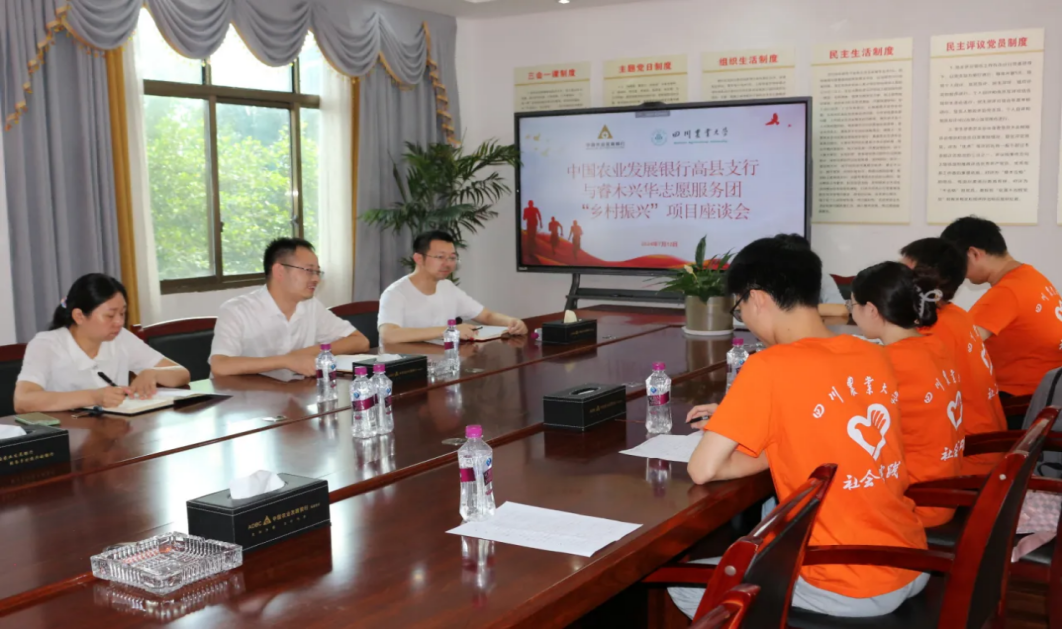 图为“睿木兴华志愿服务团”团队成员与农发行高县支行领导开展乡村振兴座谈会