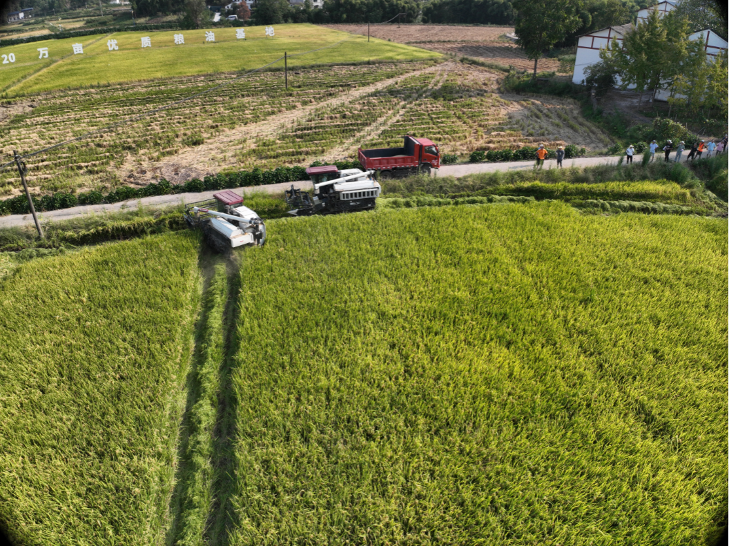 据悉,广安区水稻“百亩超高产攻关片”和“千亩高产展示片”工作将国家重点研发任务、“天府粮仓•百县千片”高产创建和广安市“揭榜挂帅”项目相结合,由我校任万军教授为首席专家的水稻机械化生产服务团队提供科技支撑。示范片选用适合机插的深两优粤禾丝苗、川康优2115、品香优秱珍等高产优质杂交稻品种,采用了“暗化催芽齐苗壮根育秧、减穴稳苗高效机插、肥水一体化管理”为核心的杂交稻高产高效机插栽培技术进行规范化管理,稻株长势均匀、整齐、成熟度一致,具有代表性,可复制性强。自2021年任万军教授团队以科技下乡万里行为契机,在广安推广和服务机插秧技术以来,机插秧面积成倍增长;在技术的不断熟化转化过程中,稻油轮作模式下的水稻产量也经历住了今年高温干旱的考验。杂交稻机插栽培技术将作为水稻产业新质生产力的关键支撑,为国家增粮、为大户增收,持续为以广安为代表的丘陵区天府粮仓建设赋能。