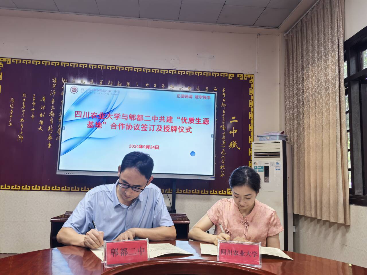 随后,魏瑶代表学校与郫都二中签署了优质生源基地协议书并进行授牌。