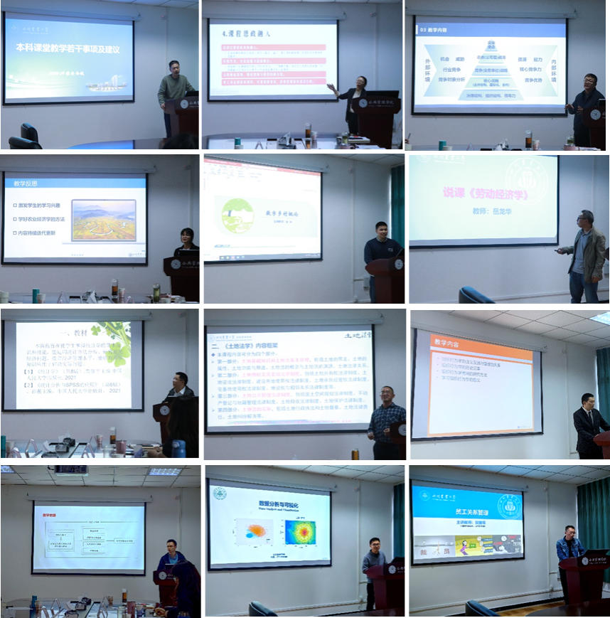 比赛由12分钟的说课、3分钟的课件展示和评教满意率三部分组成。教师们围绕教学目标、教学内容、教学方式和教学反思等多个维度展开说课,深入挖掘课程思政元素,力求将思政教育融入专业课程教学之中,并通过生动有趣的案例、深入浅出的讲解以及丰富多样的教学手段,老师们或激情,或温婉,或风趣,或沉稳,教学创新和课程思政建设方面的积极探索与实践得以充分展现。