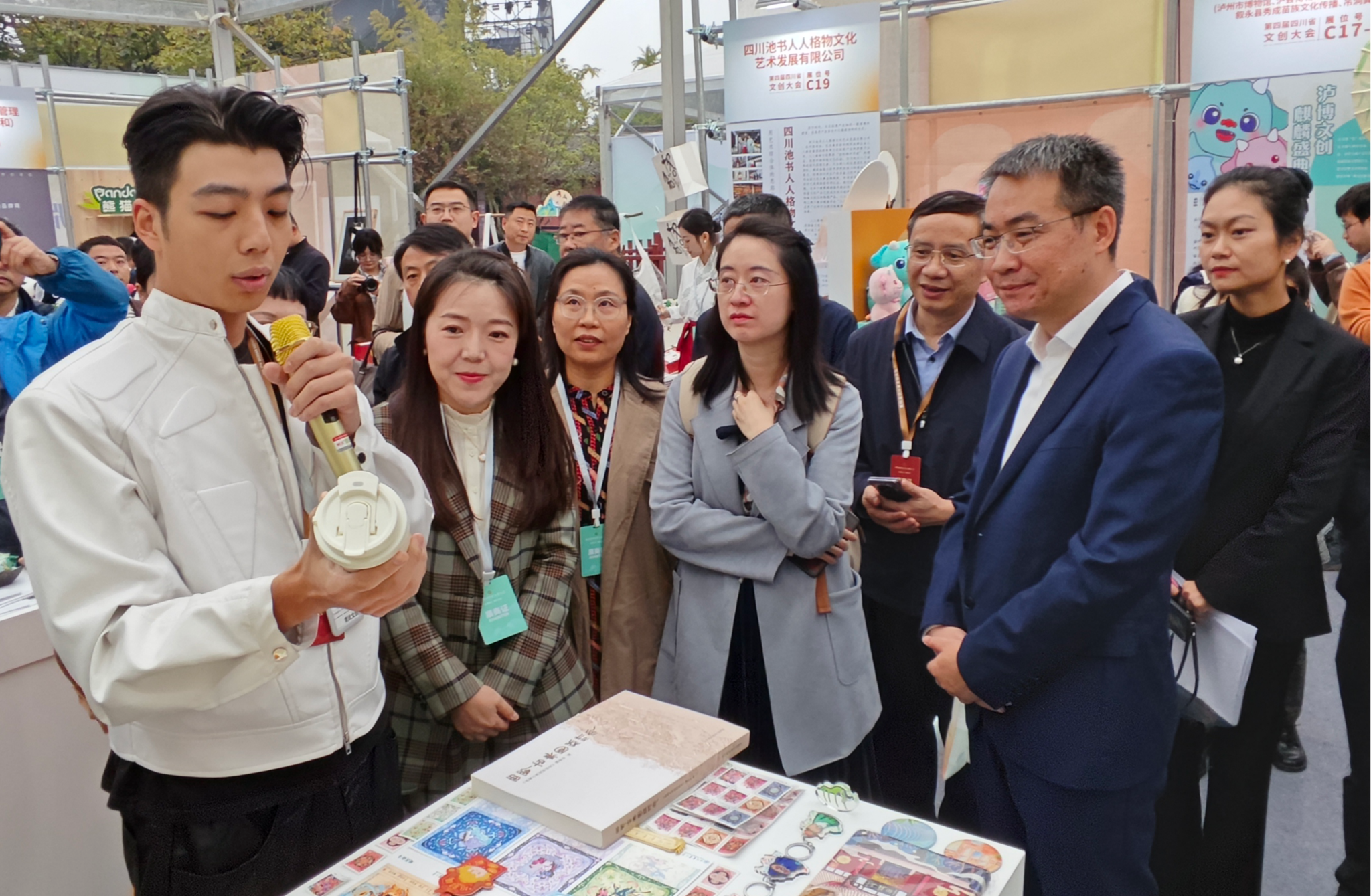 文化和旅游部资源开发司乡村旅游和创意产品指导处副处长范洁一行,在李阳春和大会特邀嘉宾我校党委常委、宣传部部长、马克思主义学院党委书记蒋远胜教授,国合处副处长、国际学院副院长李悦教授等陪同下,莅临展厅调研指导。我校各参展项目负责人分别作了展示和介绍,相关文创作品得到文化和旅游部、四川省文旅厅高度肯定。