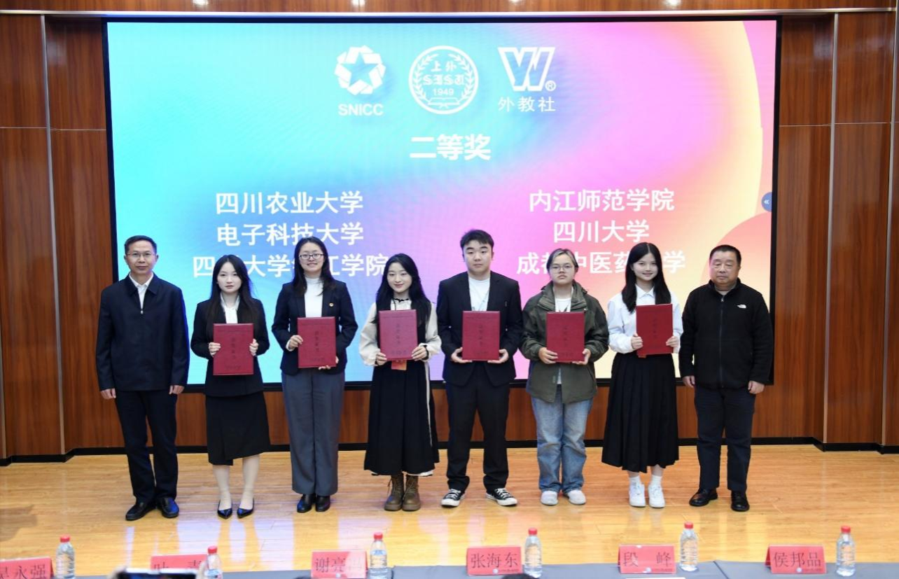 11月9日,由四川省教育厅主办的“第三届四川省高校学生跨文化能力大赛”暨第七届“外教社杯”全国高校学生跨文化能力大赛四川赛区总决赛在四川师范大学圆满落幕,来自四川省各大高校的35支队伍齐聚一堂,共赴一场文化交流的盛宴。在文化与智慧的激烈碰撞中,由人文学院何雨阳、食品学院陈好、法学院尹勤组成的tyc41183太阳成集团代表队在人文学院外语系杨柳、罗敏、丁芳芳老师的指导下,以总排名第五的成绩获得大赛二等奖。
