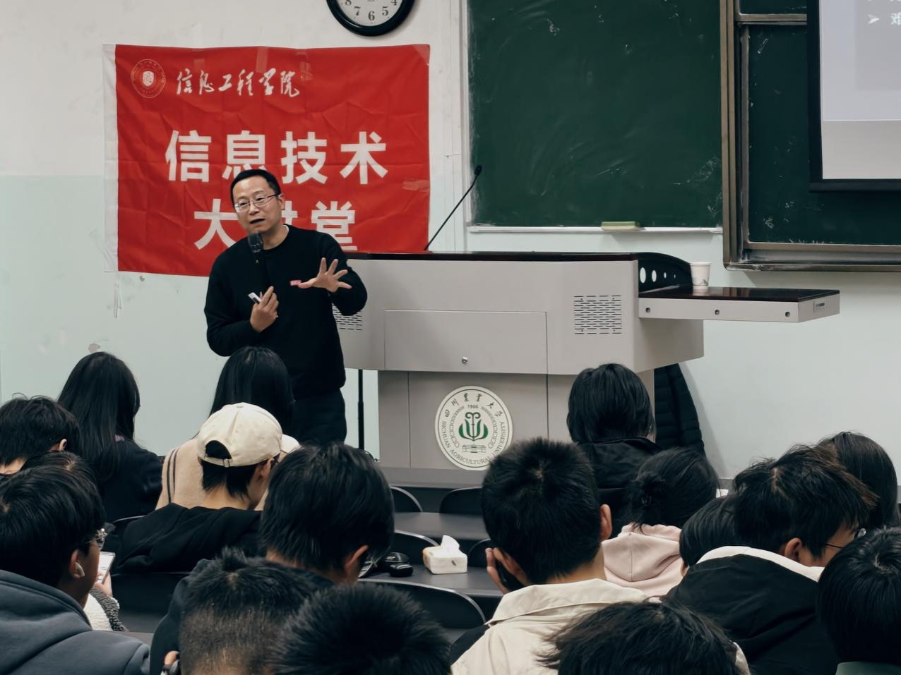 为引导学生深入认识所学专业,充分了解行业发展趋势,进一步激发科研、创新和创业热情,11月19日下午,世界500强企业、戴尔科技集团医疗行业首席技术官张灿受邀做客信息工程学院《信息技术大讲堂》,在10教A402开展了题为《AI推动医院数智化转型》的专题讲座。电子信息2024级全体研究生及学院本科生共200余名同学参加。讲座由潘绯老师主持。
