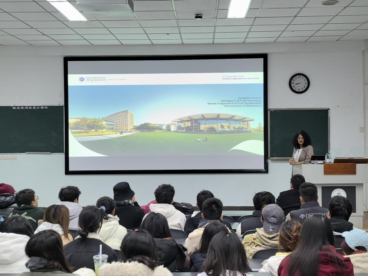 12月2日,昆士兰大学农业与食品可持续发展学院副教授、食品技术专业本科教学主任Sangeeta Prakash博士受邀到食品学院开展学术交流与讲学活动,学院教师代表、研究生及食品科学与工程(联合)专业本科生参会。活动由食品学院副院长张清教授主持。