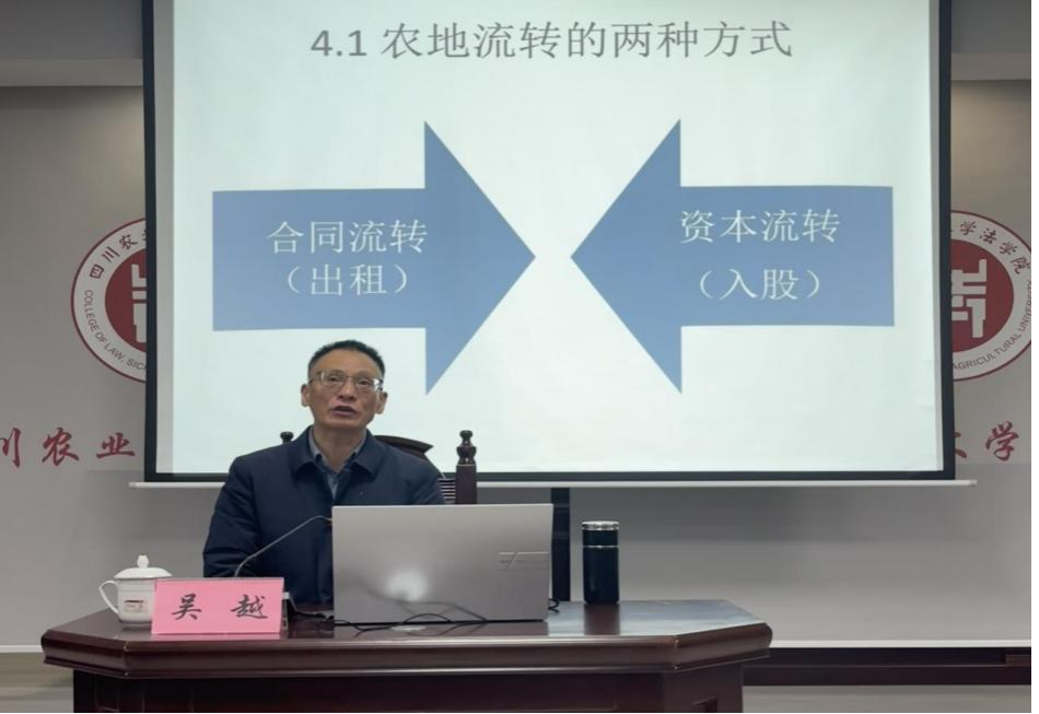 12月10日下午,西南财经大学法学院光华学者计划特聘教授、二级教授、博士生导师、四川省十大中青年法学专家吴越受邀到雅安校区开展“法学名家大讲堂”专题讲座,讲座题目为“乡村振兴与农村土地管理法律政策解读”。法学院、公共管理学院师生共计100余人聆听了报告。讲座由法学院院长颜勇主持。