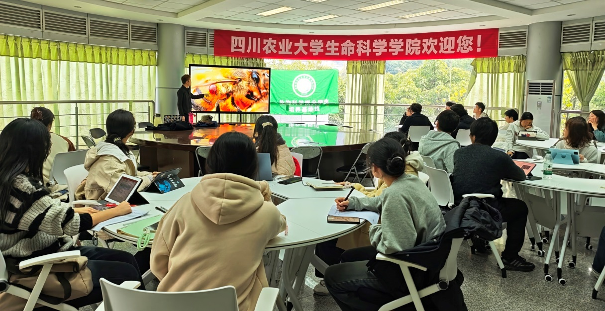 《学术英语素养》课程负责人吴花拉博士诚邀Gurion Ang博士联合,为生物学科拔尖基地班学生们开设了全英文课程。这门课程聚焦生物学前沿文献,旨在提升学生的学术英语水平和科研能力。在共同探讨PLOS Pathogens上的文章时,Ang博士的引导激发了学生用全英文表达学术观点的热情,为参与国际科研合作打下了坚实的语言基础。紧接着,Ang博士为生物技术专业学生呈现了“Seeds of innovation: the Bt-crop revolution(种子创新:抗虫作物的改革)”主题课程,以其幽默深刻的教学风格,让学生们提前体验了昆大的课堂氛围,为他们未来的学习生涯奠定了认知基础。此外,Gurion Ang博士为师生带来了题为“Invasion unravelled: dealing with ecological intruders(揭开入侵种的面纱:应对生态中的入侵者)”的学术报告。他以幽默的方式介绍自己,并用考拉的照片吸引了研究生们的注意。Ang博士详细介绍了地壳板块运动对澳大利亚大陆变化的影响,以及这些变化如何成为生态学研究的焦点。他强调了澳大利亚在生态学中的独特地位,并讨论了外来物种对当地动植物种群的影响。学生们通过讲座学习了如何区分入侵物种与引入物种,并探讨了生态保护与物种管理策略。