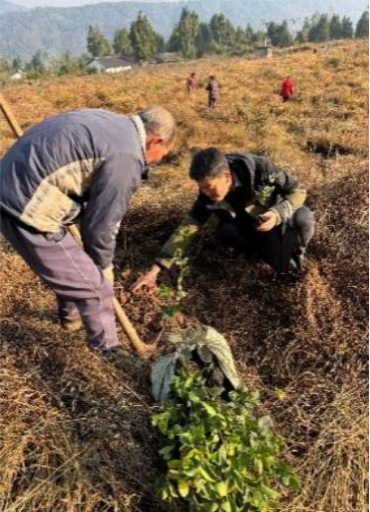 12月11日至12日,应平昌县林业局邀请,团队与平昌县林木种苗站和两山生态资源经营有限公司负责人员一同前往平昌大运村油茶种植基地。针对上半年油茶种植成活率低的问题,陈涛现场指导农户,传授种植关键要点,强调了“一撕二浅三垒四覆”的种植原则,以提高成活率。此外,针对平昌县新建油茶林遇到的油茶品种选择和选配、苗木质量等级把控、苗木运输和临存、苗木栽植技术把控、幼林杂草防治等方面问题,团队还与林业局、企业管理人员进行了细致交流和指导。
